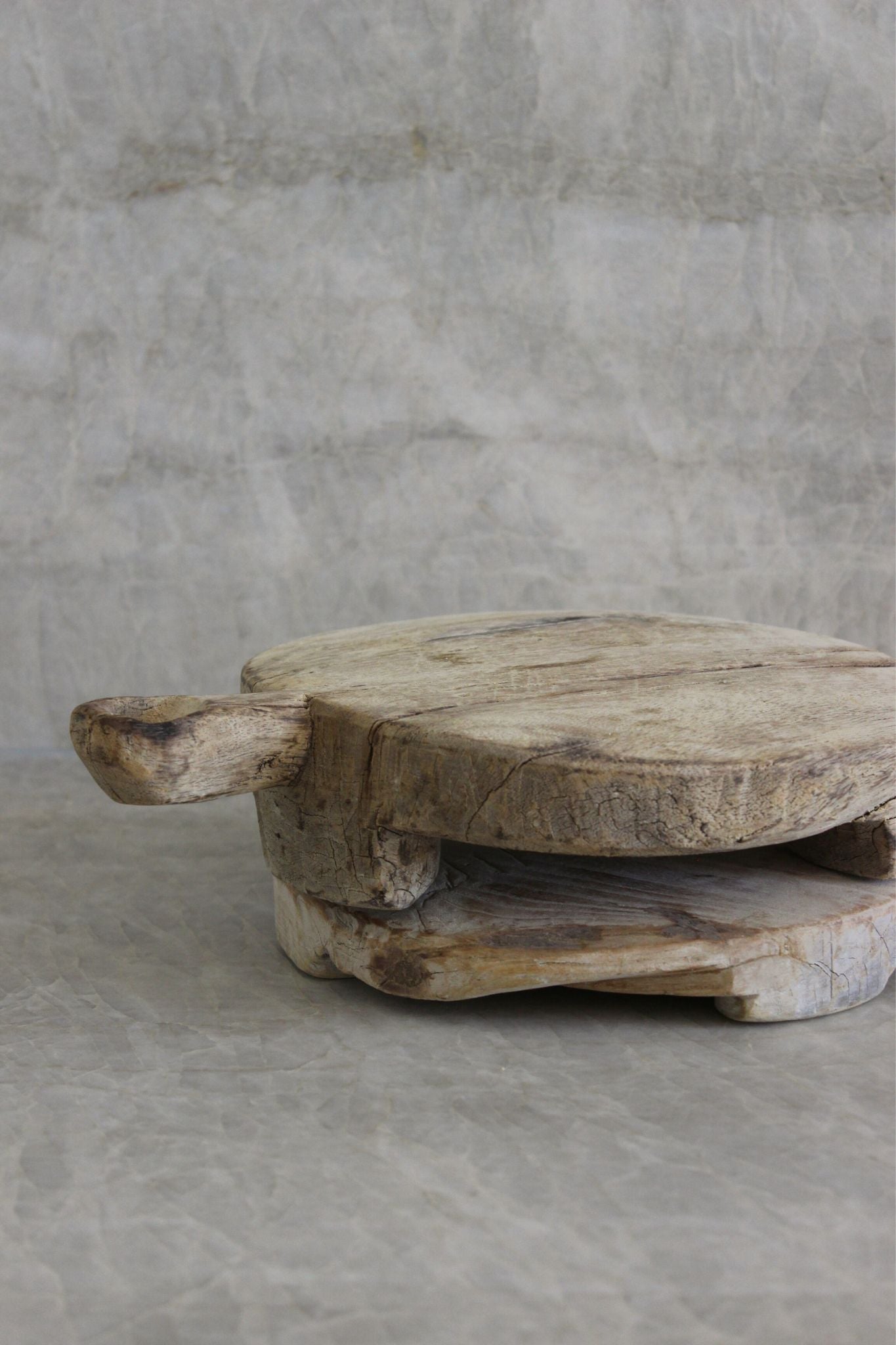 Our Bleached Chapati Boards is a vintage found item sourced from India. These versatile boards add a touch of warmth and design to your coffee tables, kitchen counters, islands, and entertainment consoles. Perfect for placing a candle, olive oil, or soap on.